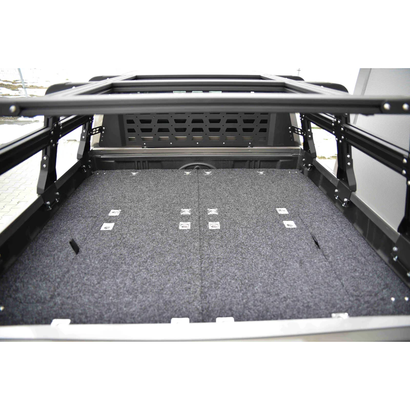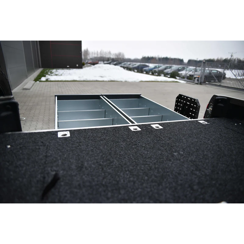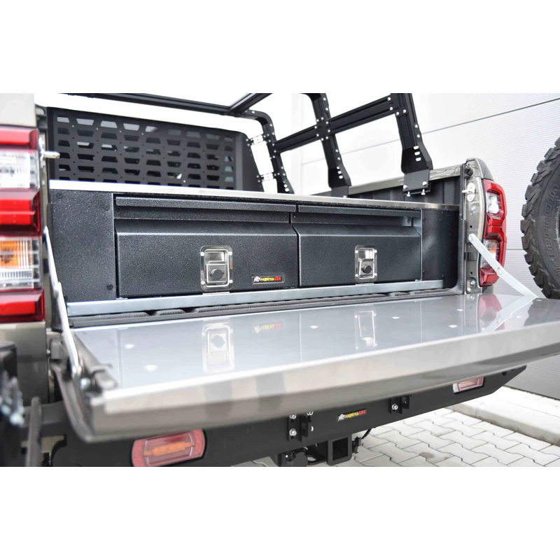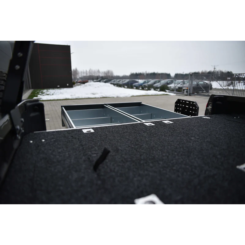 Trunk drawers for Toyota Hilux Revo AN110/AN120/AN130 2020- (from 2nd facelift). Drawer systems are a popular choice in storage solutions for travelers in their overlanding vehicle. Trunk drawers let you efficiently use vehicle's cargo area while providing comfort features.