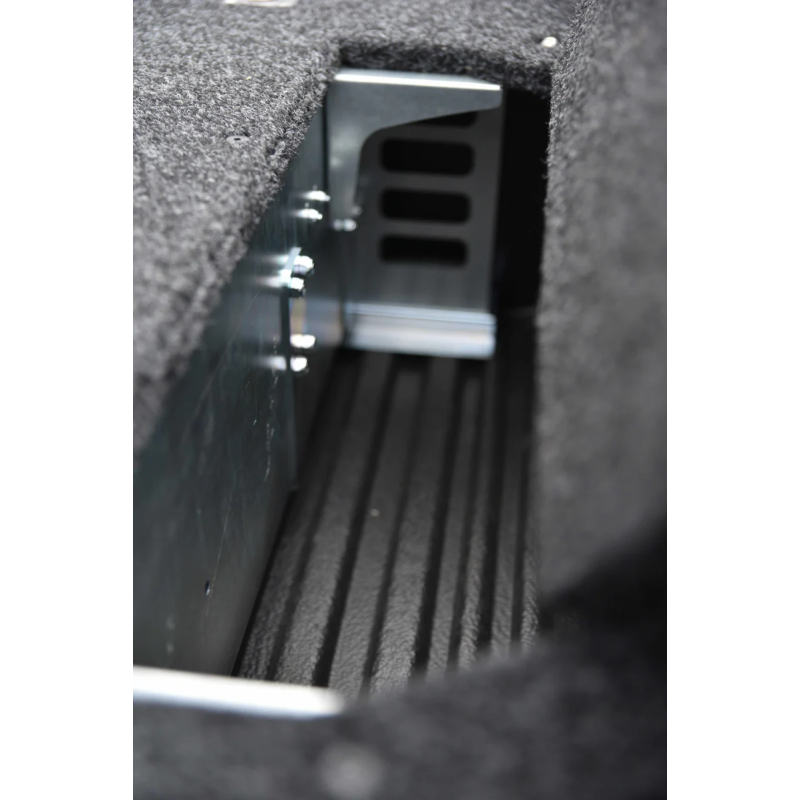 Lockable and safe storage system - both drawer locks keyed alike. The top of the drawers is made from plywood. All internal walls, top and base of drawer lined with UV stabilised carpet so you can easily make a sleeping place on top of it. Body and drawers are made from galvanized sheet. Mounting hardware included.