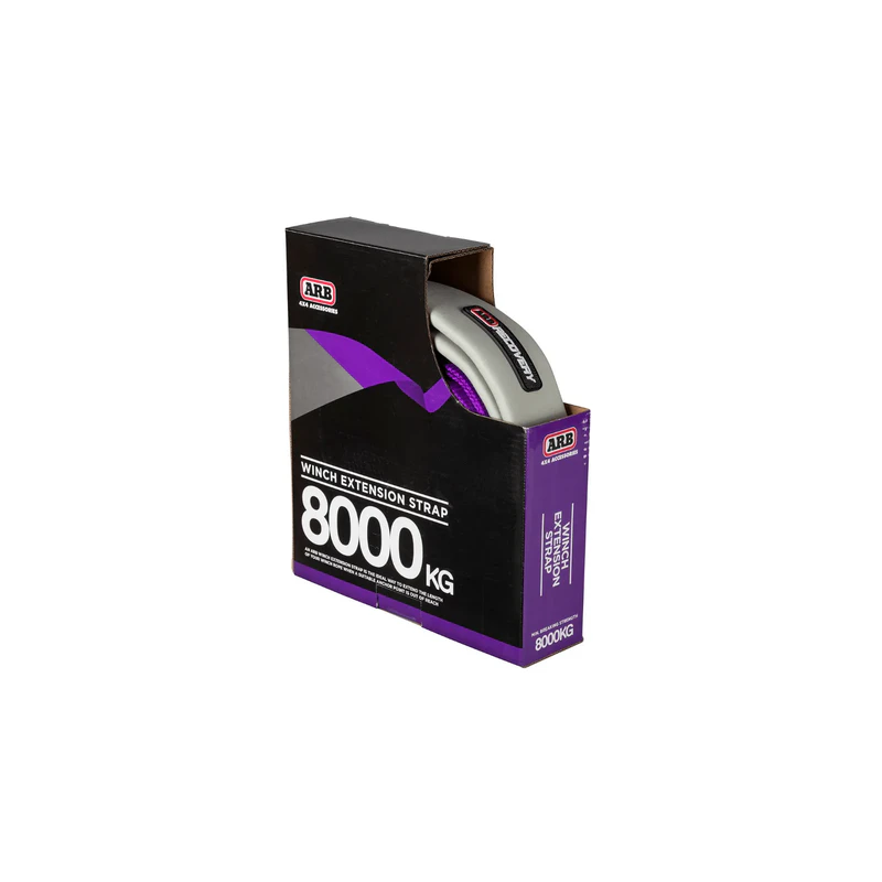 Winch extension strap ARB 20 m 8 t recovery strap. Lightweight non-stretching recovery strap that is perfect for extending the length of your winch’s rope when the most suitable anchor point is out of reach or when you need to anchor a vehicle to stop it from rolling or sliding. Strap ends have ears on both sides.