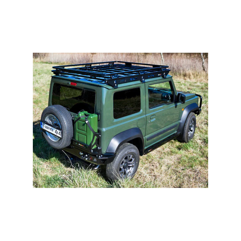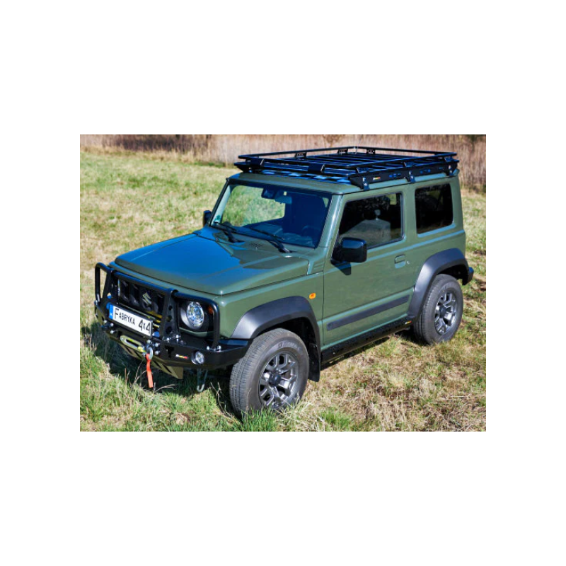 Stogo bagažinė visureigiui Suzuki Jimny IV JB74W 2018-. Skirta įvairiam lengvam ir sunkiam bagažui pervežti, kelionėms, ekspedicijoms arba įrengti medžioklės platformą, įrengiant faneros ar aliuminio paklotą. Stogo bagažinė turi vietas valstybiniams numeriams bei papildomiems žibintams tvirtinti (priekyje, šonuose, gale). Žibintai užsakomi atskirai.