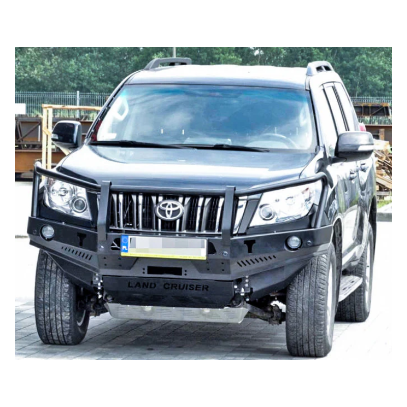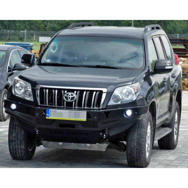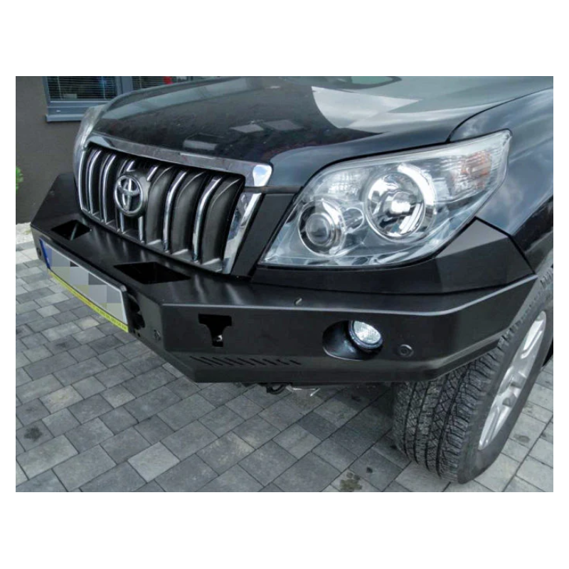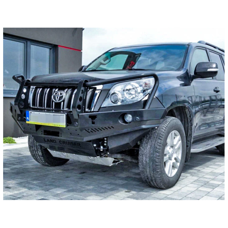 Metalinis priekinis bamperis su vieta gervei visureigiui Toyota Land Cruiser Prado J150, J155 (pritakomas Lexus GX 460) 2009-2013 (pre-facelift). Bamperis gali būti komplektuojamas su prisukamais saugos lankais.
