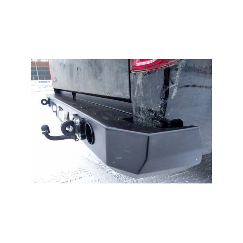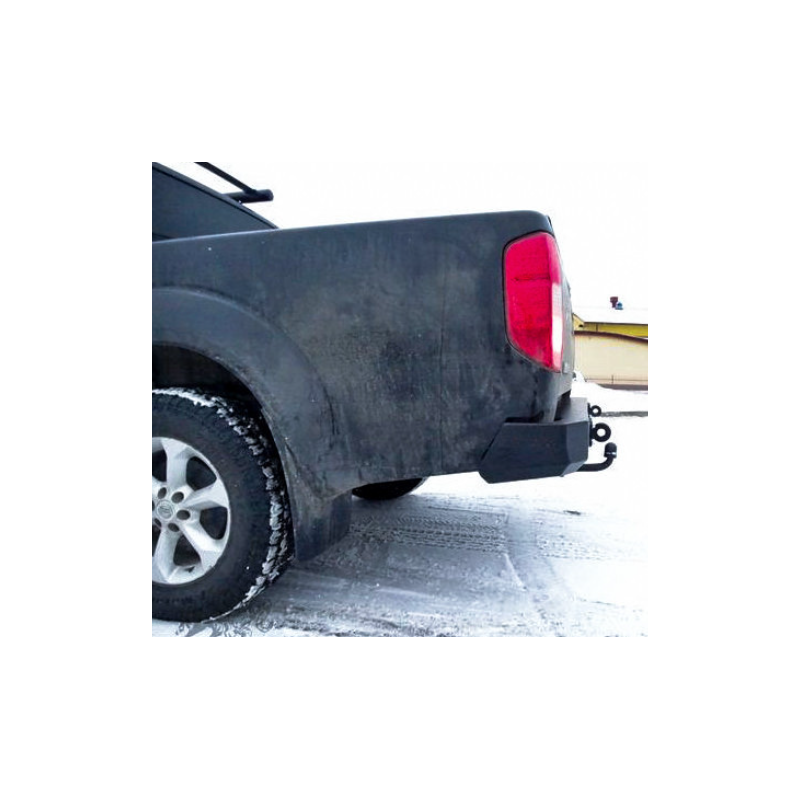 Metalinis galinis bamperis visureigiui Nissan Navara/NP300/PickUp/Frontier D40 2005-2014. Bamperis turi montažines angas ąsų laikikliams prisukti ir angas keltuvui Hi-Lift užkabinti (asų laikikliai komplektuojami už papildomą kainą).