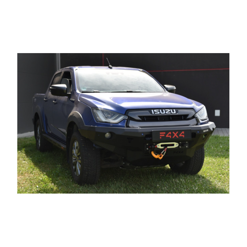 Metalinis priekinis bamperis su vieta gervei visureigiui Isuzu D-Max RG01 2020-. Bamperis gali būti komplektuojamas su prisukamais saugos lankais.