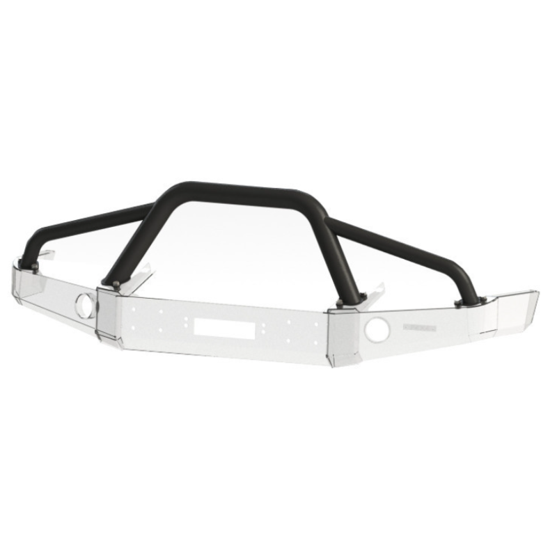 Metalinis priekinis bamperis su vieta gervei visureigiui Jeep Cherokee XJ 1984-2001. Bamperis gali būti komplektuojamas su prisukamais saugos lankais.