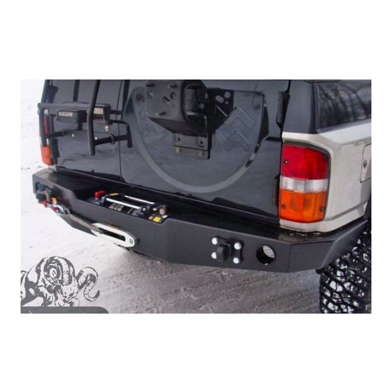 Metalinis galinis bamperis su vieta gervei visureigiui Nissan Patrol Y60 1989-1998. Šio modelio montavimui reikalinga nupjauti sparnų apatinę dalį.