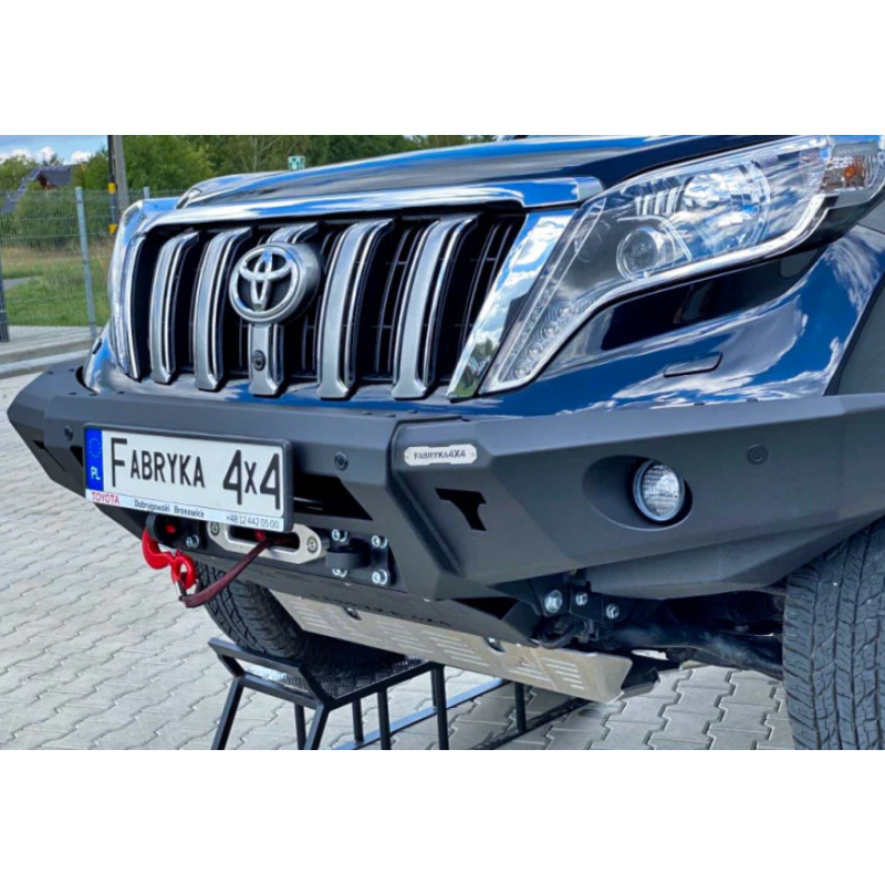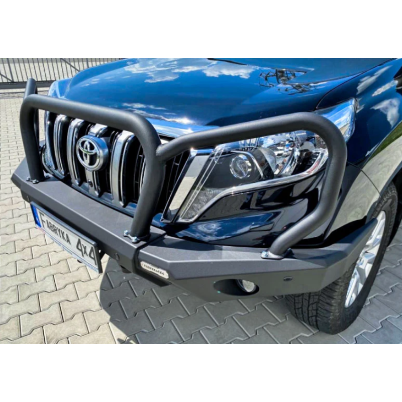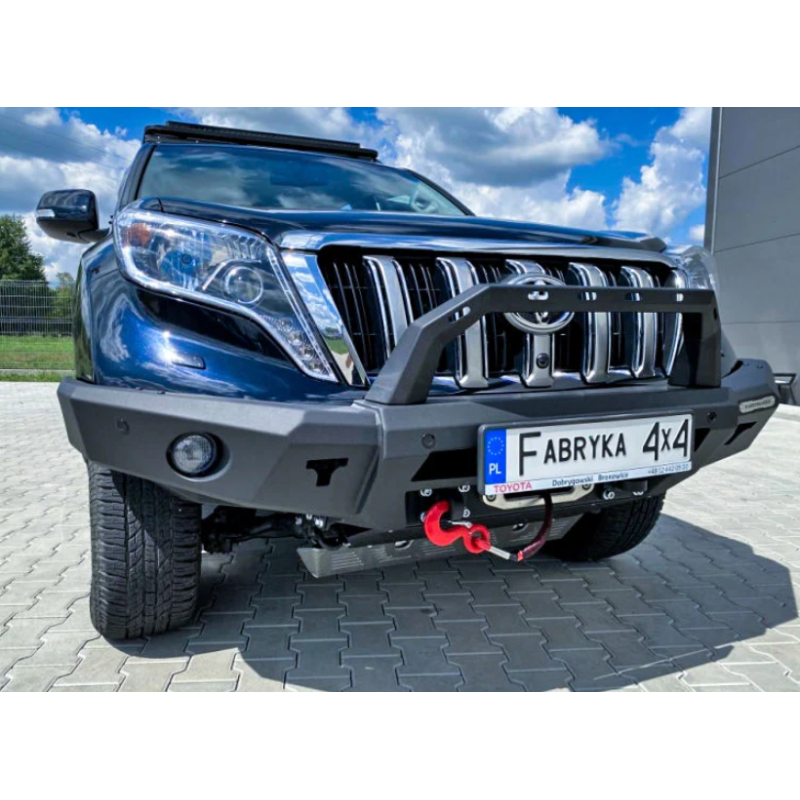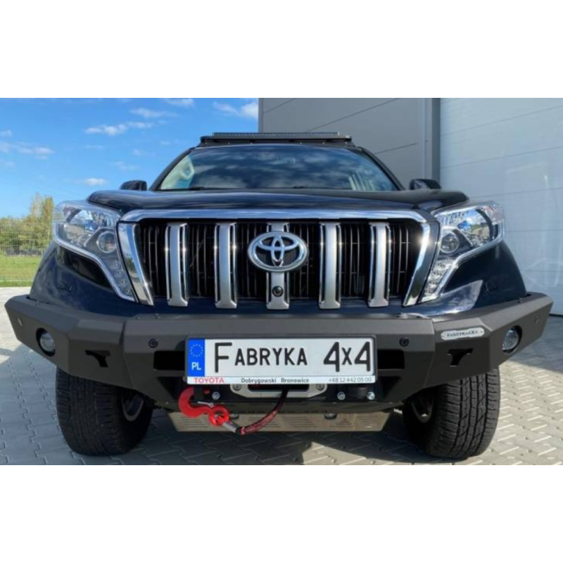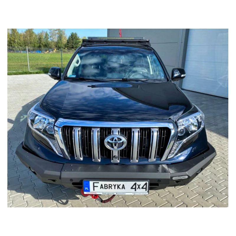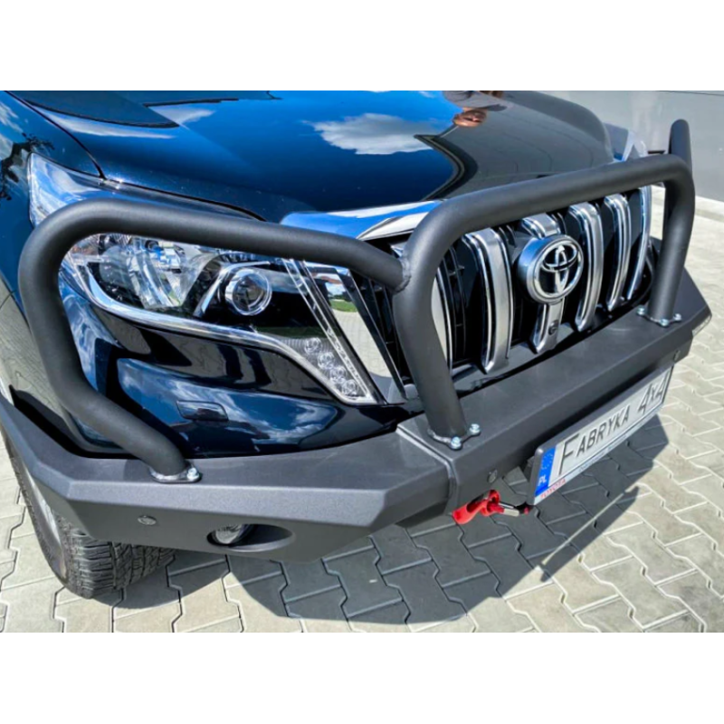 Metalinis priekinis bamperis su vieta gervei visureigiui Toyota Land Cruiser Prado J150, J155 (pritakomas Lexus GX 460) 2013-2017 (1st facelift). Bamperis gali būti komplektuojamas su prisukamais daliniais arba pilnais saugos lankais (užsakydami nurodykite pageidaujamą variantą).