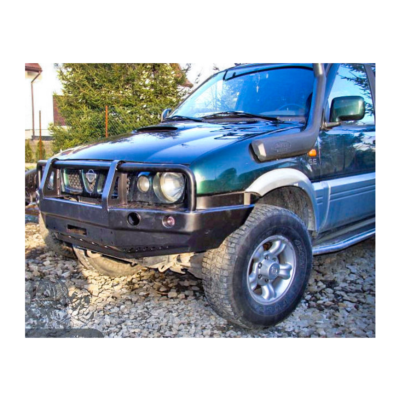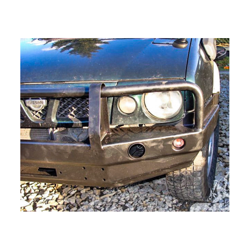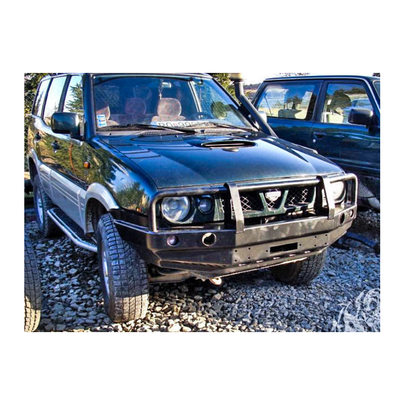 Metalinis priekinis bamperis su vieta gervei visureigiui Nissan Terrano II R20 Phase II, Ford Maverick 1996-2000. Bamperis gali būti komplektuojamas su prisukamais saugos lankais.