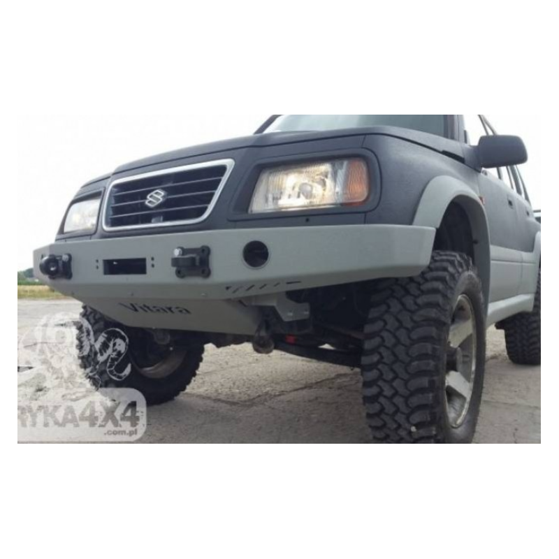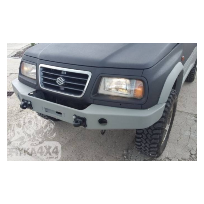 Metalinis priekinis bamperis su vieta gervei visureigiui Suzuki Vitara ET/TA 1.6 1988-1999. Bamperis gali būti komplektuojamas su prisukamais saugos lankais.