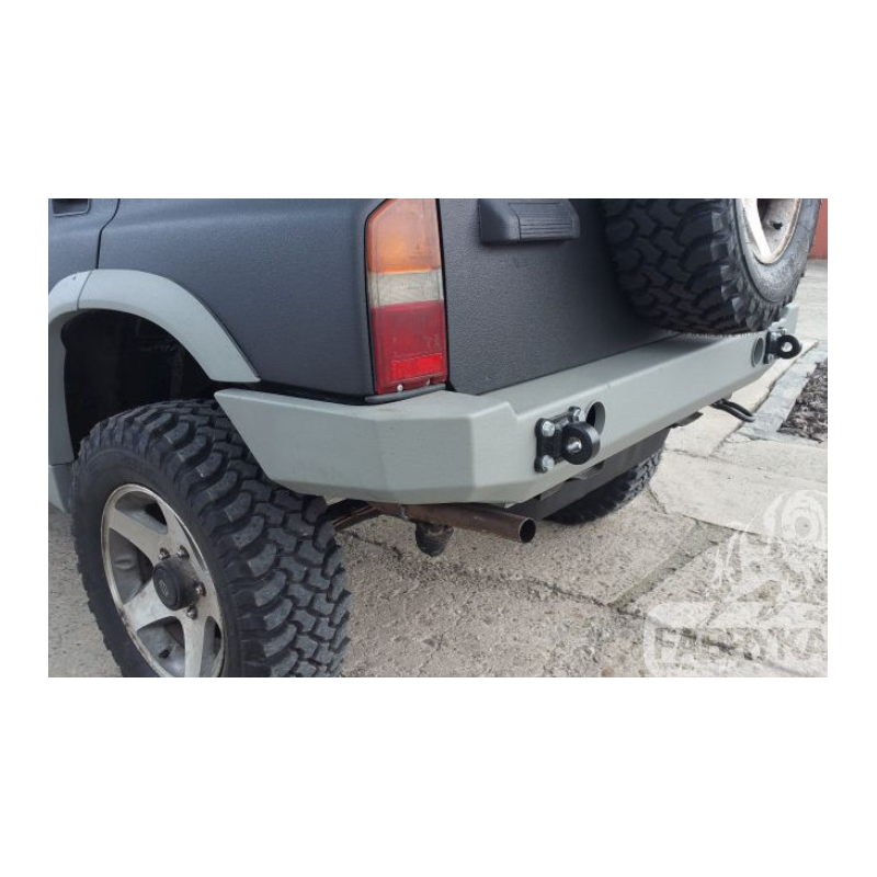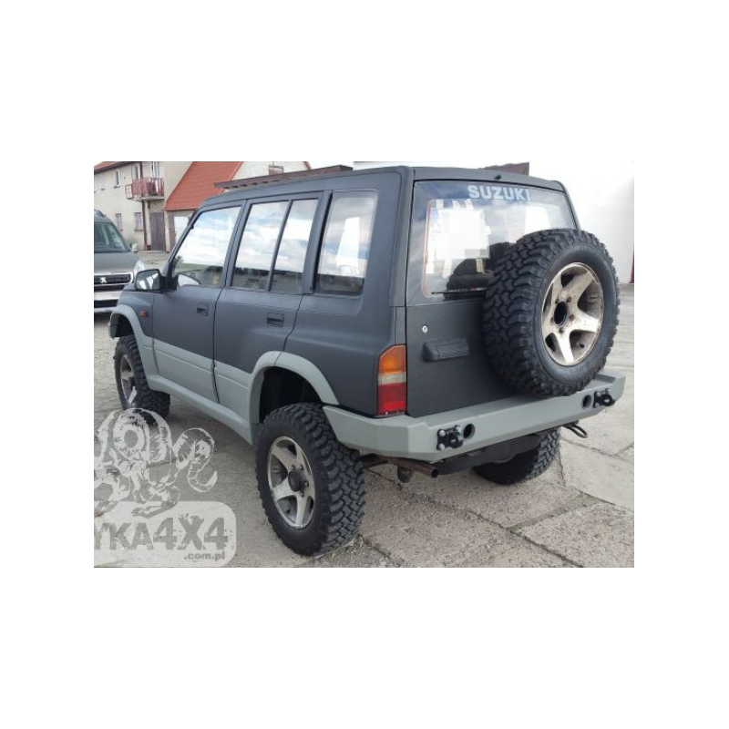 Metalinis galinis bamperis visureigiui Suzuki Vitara ET/TA 2.0 V6 1988-1999. Bamperis turi montažines angas ąsų laikikliams prisukti ir angas keltuvui Hi-Lift užkabinti (asų laikikliai komplektuojami už papildomą kainą).