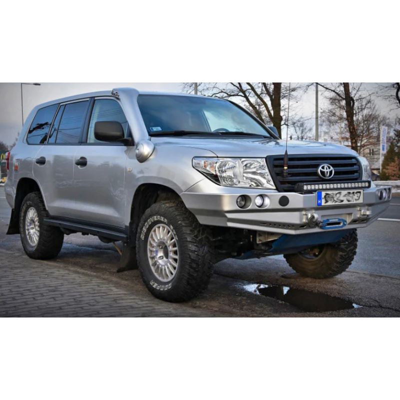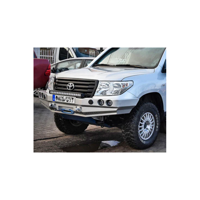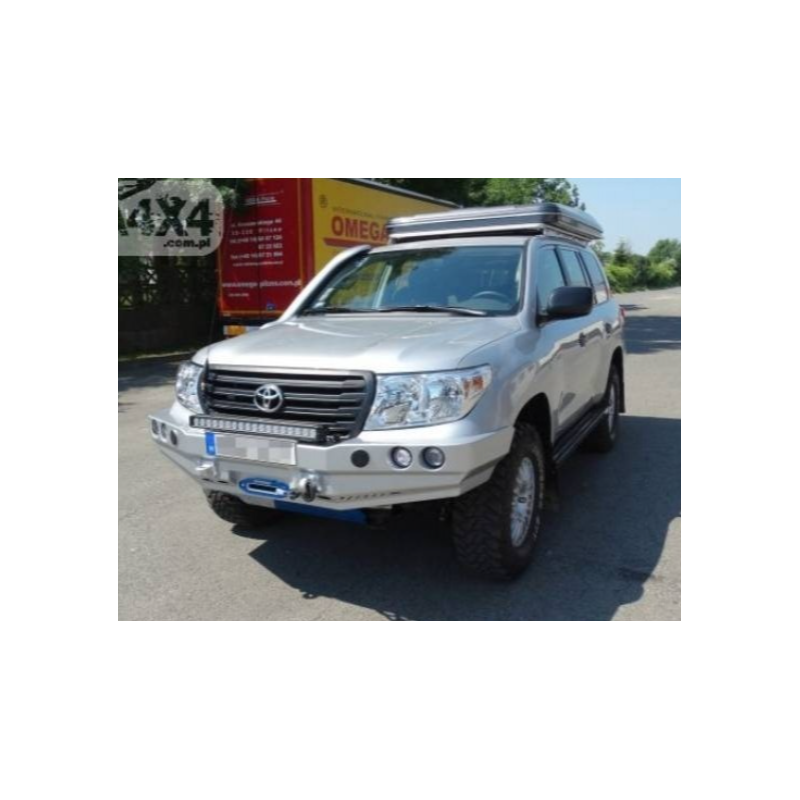 Metalinis priekinis bamperis su vieta gervei visureigiui Toyota Land Cruiser J200 (pritaikomas Lexus LX 570) 2007-2015 (pre-facelift). Bamperis gali būti komplektuojamas su prisukamais saugos lankais.