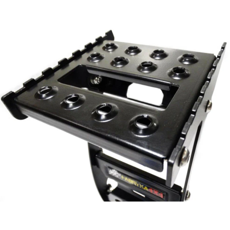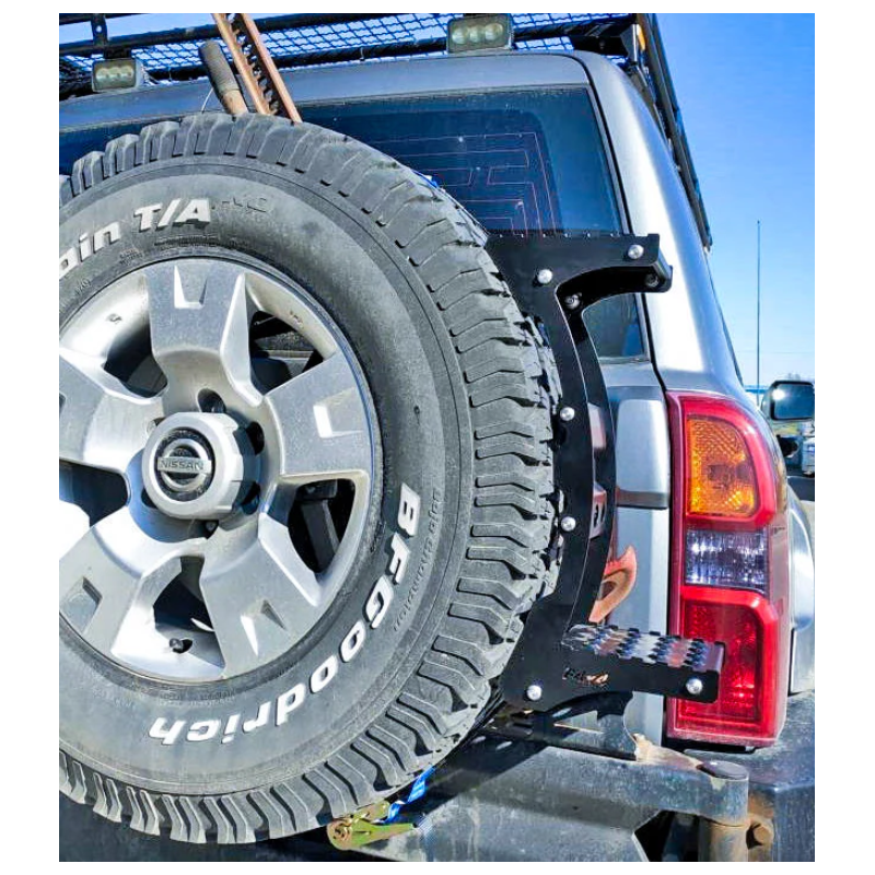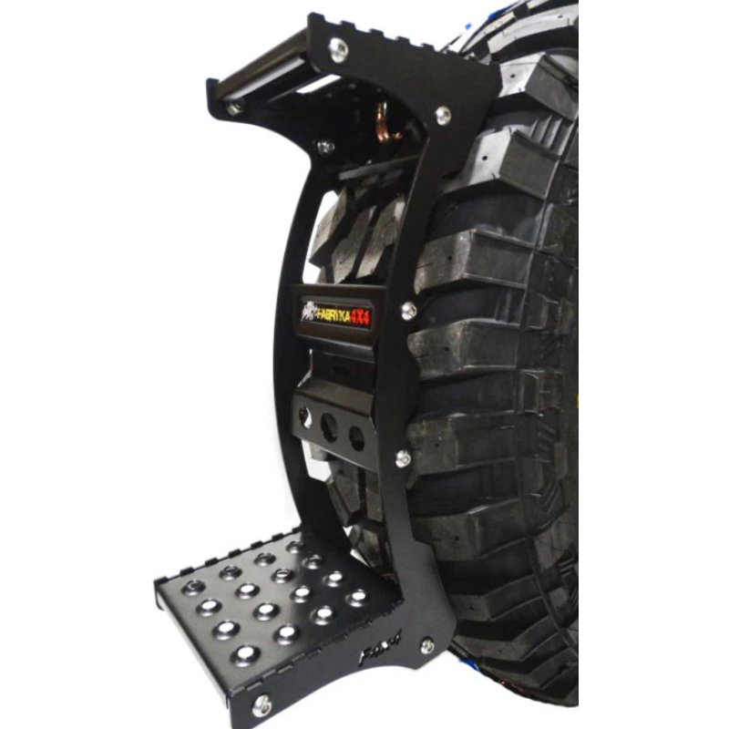 Universali pakopa padedanti pasiekti visureigio stogą. Pakopa dirželio pagalba tvirtinasi prie atsarginio rato. Dirželis įeina į komplektą. Geriausiai tinka 31-34" dydžio ratams.