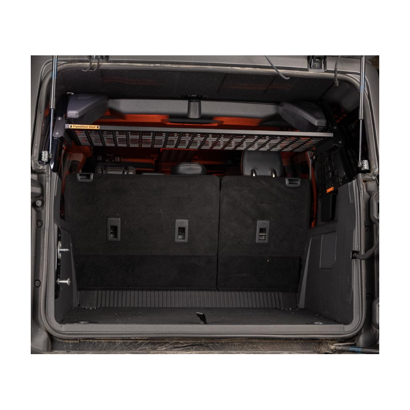 Ford Bronco 2021- (5 durų) daiktų lentyna "Molle Panel" iš plieno. Skirta patogiai tvirtinti ir pervežti salono viduje palubėje įvairius daiktus, kuriuos galima tvirtinti laikiliais, diržais, varžtais.