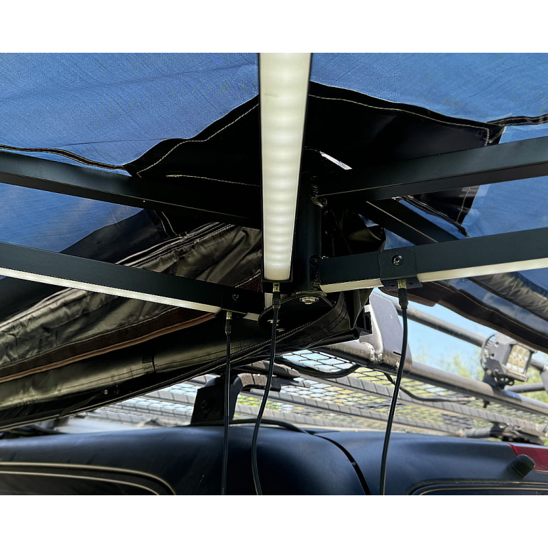 Pavėsinė-markizė Escape Fox 270° itin greitai ir lengvai išskleidžiama aliuminio tentinė konstrukcija, integruotos teleskopinės kojos. Apsaugo nuo saulės spindulių bei lietaus poilsio metu kelionėje ar stovyklavietėje. 3 LED juostos su reguliuojamu šviesos intensyvumu ir 3 baltos spalvos atspalviais, pajungiama per USB jungtį.