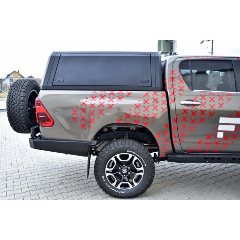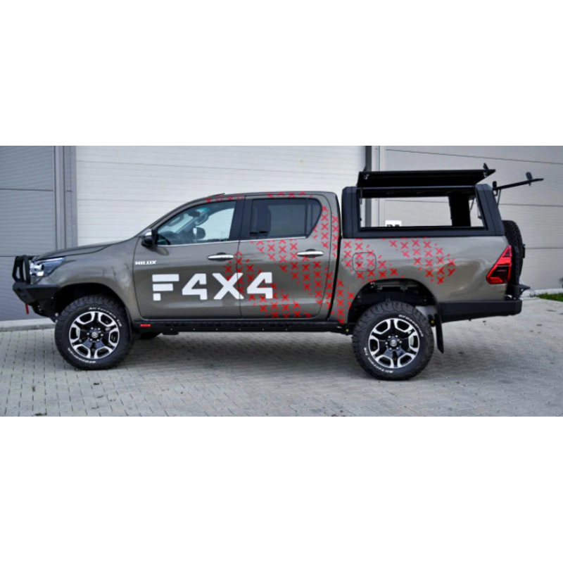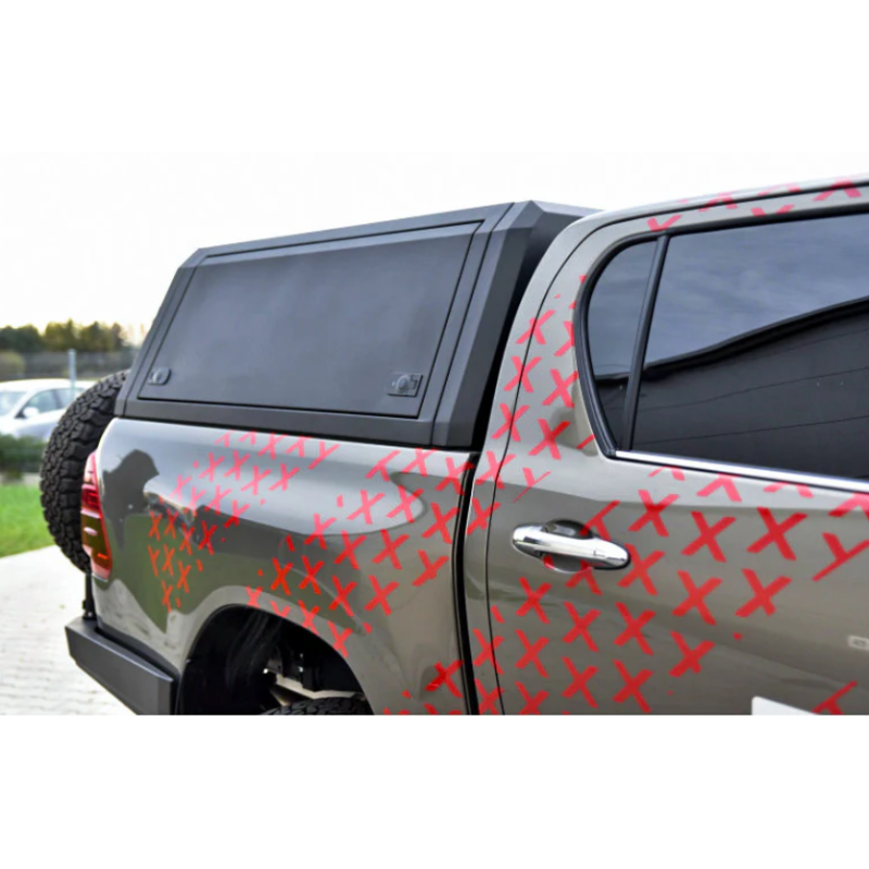 Pikapo krovinių skyriaus kietas stogas/antstatas (hardtop canopy) pickup tipo visureigiui Toyota Hilux Vigo/Revo AN10/AN20/AN30/AN110/AN120/AN130 Double Cab 2005-. Šis hardtop stogas yra puikus sprendimas kelionėms, darbui, komercinei veiklai, kai reikalinga patikima ir funkcionali įranga. Dėl tvirtos konstrukcijos ir daugybės funkcijų anstatas padidina saugumą bei komfortą keliaujant ar dirbant. Skirtingai nuo kompozicinių konstrukcijų, šis kietas stogas yra ypač tvirtas ir atsparus apkrovoms.