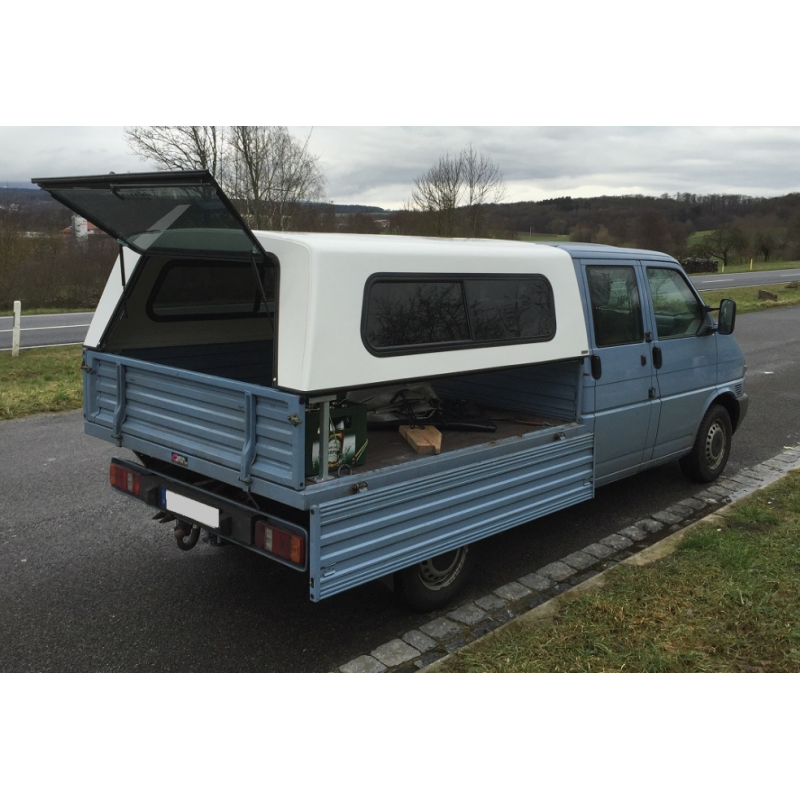 Pikapo krovinių skyriaus kietas stogas/antstatas (hardtop canopy) pickup tipo Volkswagen Transporter T4 Pickup Double Cab 1990-2005. Šis hardtop stogas yra puikus sprendimas kelionėms, darbui, komercinei veiklai, kai reikalinga patikima ir funkcionali įranga. Dėl vientisos korpuso konstrukcijos šis hardtop stogas yra ypač stabilus atsižvelgiant į jo svorį.