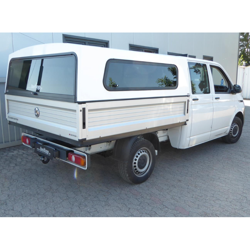Pikapo krovinių skyriaus kietas stogas/antstatas (hardtop canopy) pickup tipo Volkswagen Transporter T5, T6 Pickup Double Cab 2005-2024. Šis hardtop stogas yra puikus sprendimas kelionėms, darbui, komercinei veiklai, kai reikalinga patikima ir funkcionali įranga. Dėl vientisos korpuso konstrukcijos šis hardtop stogas yra ypač stabilus atsižvelgiant į jo svorį.