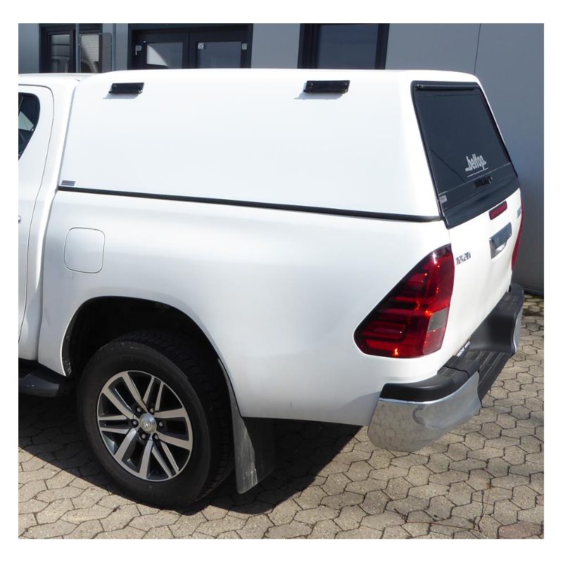 Pikapo krovinių skyriaus kietas stogas/antstatas (hardtop canopy) pickup tipo visureigiui Toyota Hilux Revo VIII AN110/AN120/AN130 Double Cab 2015-. Šis hardtop stogas yra puikus sprendimas kelionėms, darbui, komercinei veiklai, kai reikalinga patikima ir funkcionali įranga. Dėl vientisos korpuso konstrukcijos šis hardtop stogas yra ypač stabilus atsižvelgiant į jo svorį.