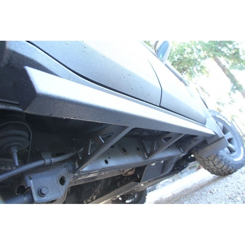 MorE 4x4 slenksčiai yra smėliuoti, cinkuoti ir padengti milteliniais dažais su struktūra Sachara - sutrūkinėjusios plutos tipo.