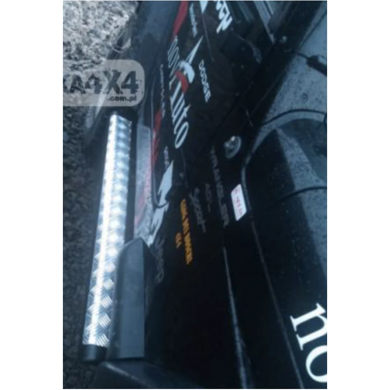 Sustiprinti plieniniai slenksčiai visureigiui Jeep Wrangler TJ 1997-2006. Slenksčiai leidžia kelti visureigį Hi-Lift tipo domkratais. Slenksčiai apsaugo automobilį nuo išsikišusių medžių šakų, akmenų ar kitų kliūčių kelyje. Taip pat jie padeda įlipti ir išlipti, o rifliuoto aliuminio paviršius apsaugo nuo paslydimo.