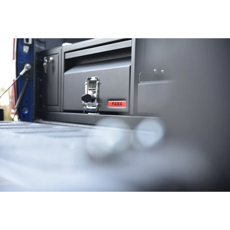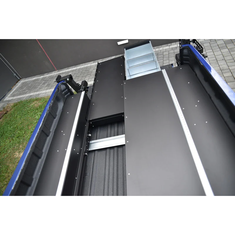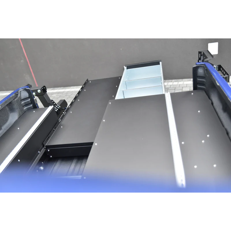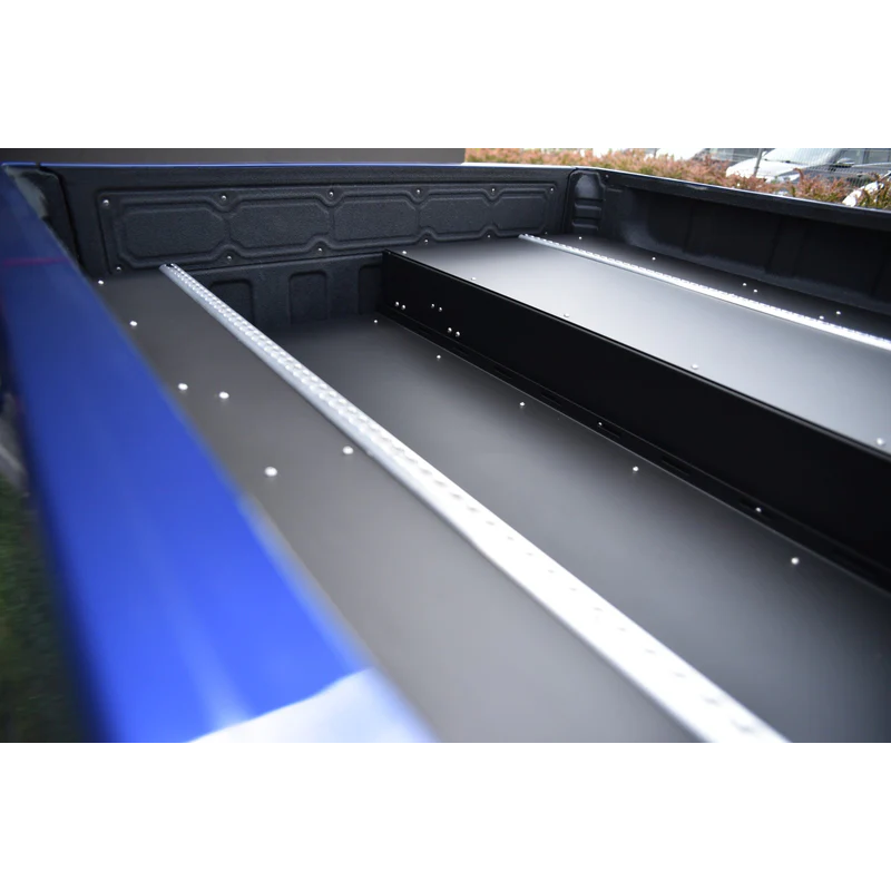 Bagažo stalčiai pagaminti iš cinkuoto plieno lakšto, kuris užtikrina gerą atsparumą korozijai. Stalčių mechanizmą sudaro nerūdijančio plieno sekcija su guoliais, sumontuotais tiek dugno, tiek viršaus, tiek stalčiaus šonuose, todėl važiuojant nėra pašalinių barškėjimo garsų. Kiekviename stalčiuje yra dvi vietos pertvarai, kurią galima naudoti priklausomai nuo jūsų poreikių. Stalčiuje yra tvirta nerūdijančio plieno spyna, kurią galima užrakinti raktu. Konstrukcija turi aštuonias atramas, kurios suteikia stabilumą apkrovoms, tokių kaip šaldytuvas ar bagažas ant jo paviršiaus. Šonuose yra papildomos sandėliavimo ertmės, kurios leidžia efektyviai išnaudoti bagažinės erdvę.