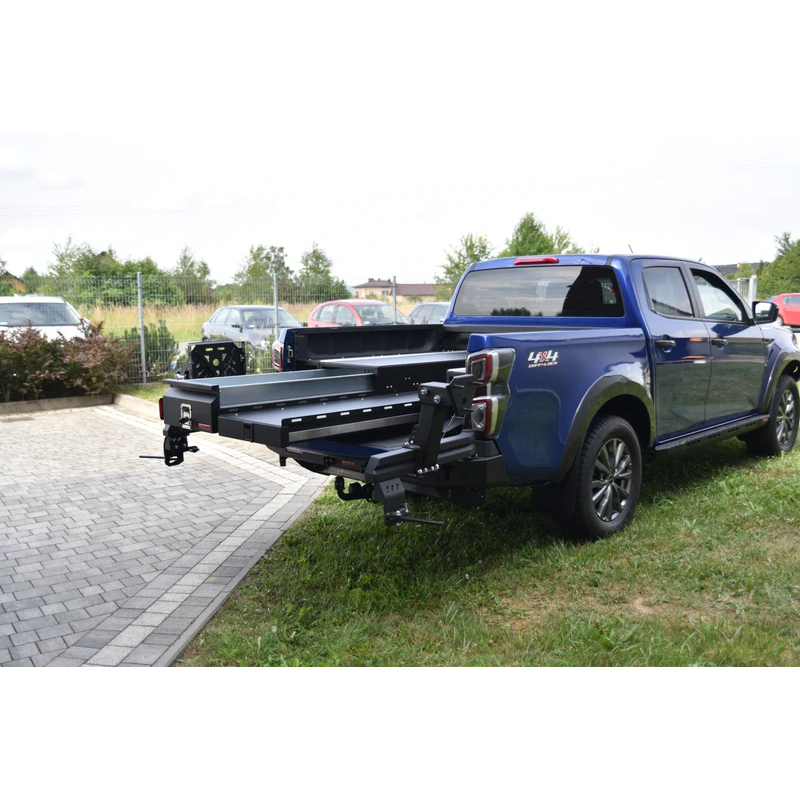 Bagažo stalčiai visureigiui Isuzu D-Max RG01 2020-. Bagažo stalčių sistemos yra populiarus pasirinkimas keliaujantiems visureigiais ir ne tik. Bagažo stalčiai leidžia efektyviai išnaudoti jūsų visureigio bagažinės erdvę ir suteikia patogumo.