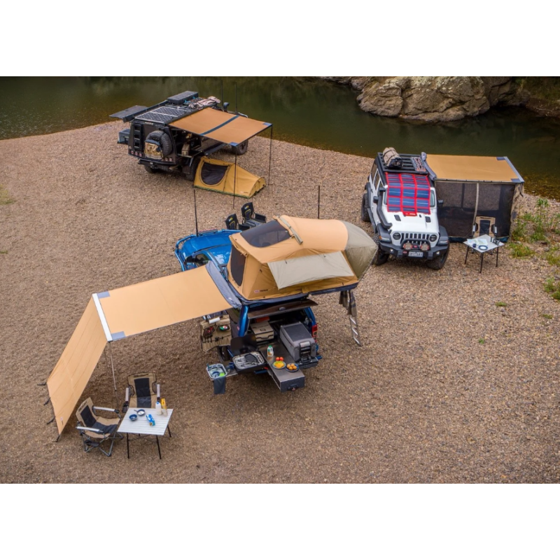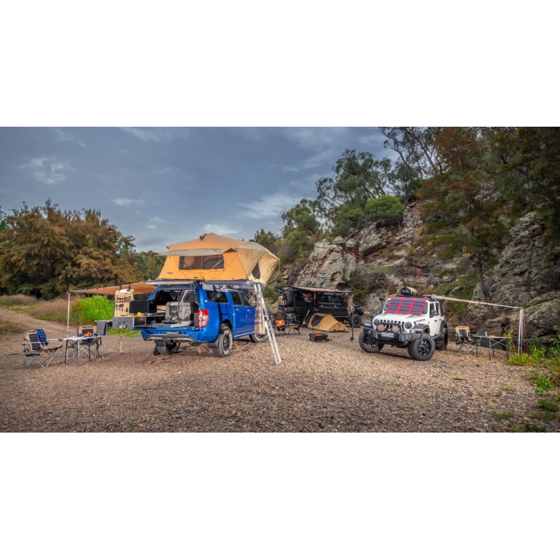 Palapinę galima montuoti ne tik ant visureigių, pikapų, bet ir kitų automobilių ar priekabų, pasirenkant Jums patogią išskleidimo kryptį. Šoniniai langai pilnai atsidaro puikiai ventiliacijai. Aukštai išskleistoje konstrukcijoje patogu sėdėti ir persirenginėti, tvirta konstrukcija atlaiko atšiaurias sąlygas. Išbandyta ir pasiteisino karštoje Afrikoje, Albanijoje bei šaltoje Skandinavijoje, Karpatų kalnuose ir be abejo Lietuvos klimate.