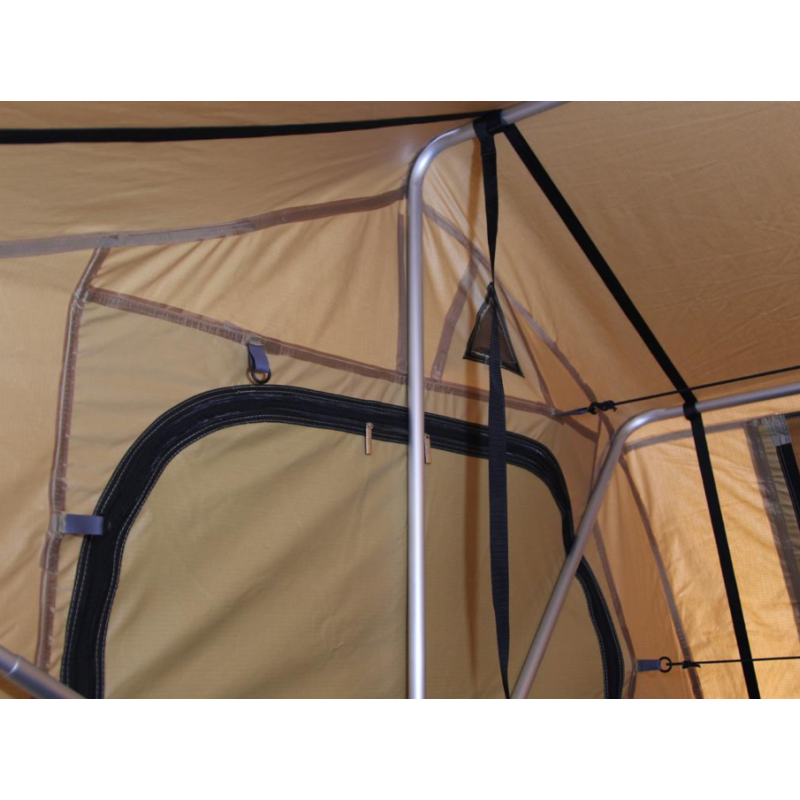 Palapinę galima montuoti ne tik ant visureigių, pikapų, bet ir kitų automobilių ar priekabų, pasirenkant Jums patogią išskleidimo kryptį. Šoniniai langai pilnai atsidaro puikiai ventiliacijai. Aukštai išskleistoje konstrukcijoje patogu sėdėti ir persirenginėti, tvirta konstrukcija atlaiko atšiaurias sąlygas. Išbandyta ir pasiteisino karštoje Afrikoje, Albanijoje bei šaltoje Skandinavijoje, Karpatų kalnuose ir be abejo Lietuvos klimate.